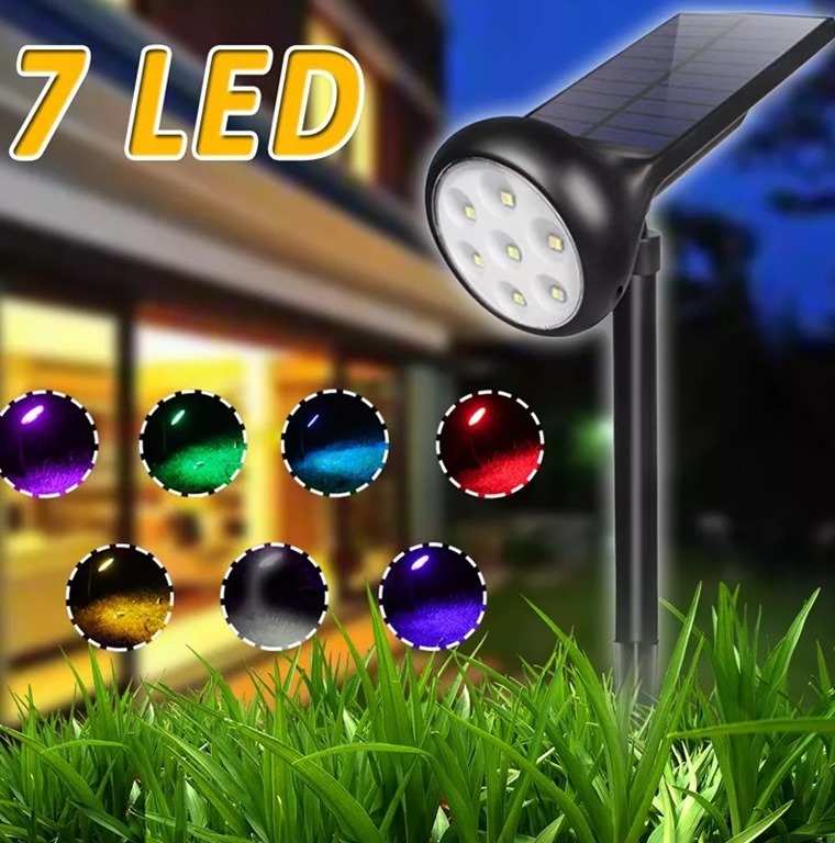 The unit has a 5v 1.5w solar panel, a 16850 Lithium battery and 7 RGBW LEDS (the WHITE is a nice, cool white and the colours are bright. Power is 1.55W, working hours are claimed to be 8 hours and material is ABS. That working time claim is way too vague to be useful but I’ve never seen the lamp give up at night.