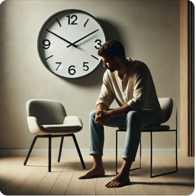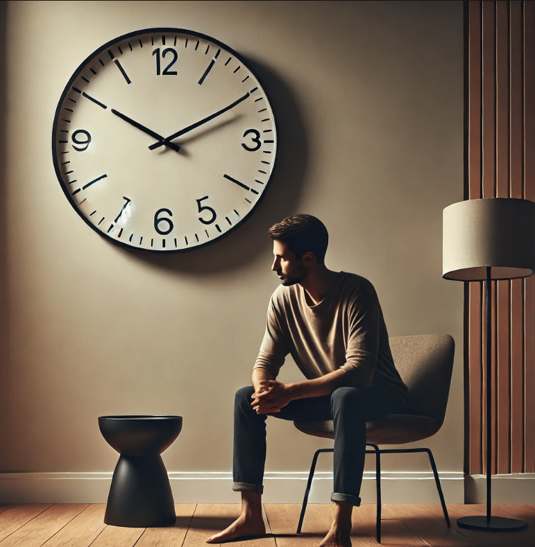 ChatGPT: “Here is the image of a man sitting in front of a wall clock with its hands showing 5:25.”