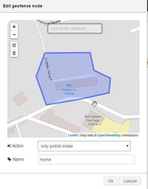 Now, I went off on a crawl and found a NODE-RED node to do GEOFENCING – here it is.