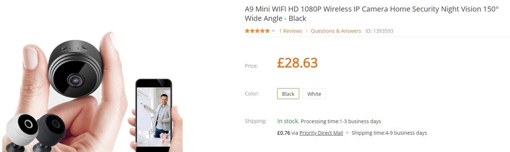 As some of you know I have various IP cameras dotted around both in the UK and Spain – just to keep an eye on things. I received this particular camera from Banggood back in January 2019 – a miniature fish-eye type camera which connects (as do most) via an app – in this case the free Android App HDMiniCam and the quality/ersolution claim is H264 1080p.