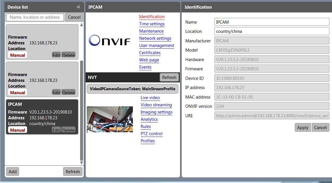 useing ONvif device manager