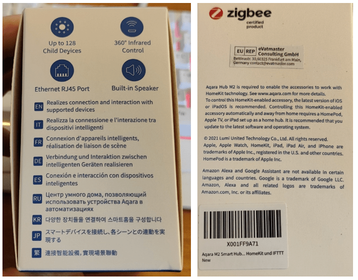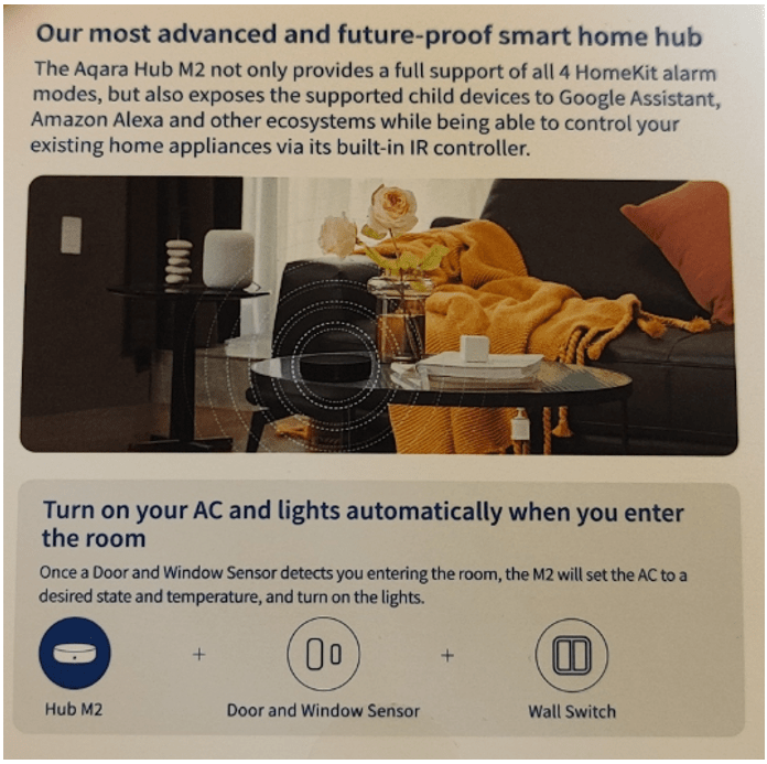 So as I was starting to get to grips with controlling my lights – I noted Google griping that it had found something called HUB 2 and when I clicked to progress that – not found – how can it be not found when it’s just found Hub 2. The only Hub 2 I could think of was my Switchbot Hub 2 – definitely switched on and hooked into the WiFi – so I’m no further forward with that one. Not realising it was the Switchbot Hub, I contacted Aqara and asked them about their Hub 2 – and witin 2 days, one arrived at my door here in rural Spain… amazing. However – it’s actually called HUB M2 and supports the many Aqara Zigbee devices which I currently have running under Zigbee2MQTT… but also tons of other stuff – rather than re-invent teh wheel, I’ll just copy a screenshot of their ad below.. check out all the things this baby has. I have to say for some time I’ve been impressed by Aqara – they even came right out with it and said that their cat feeder isn’t currently supported – without being asked.