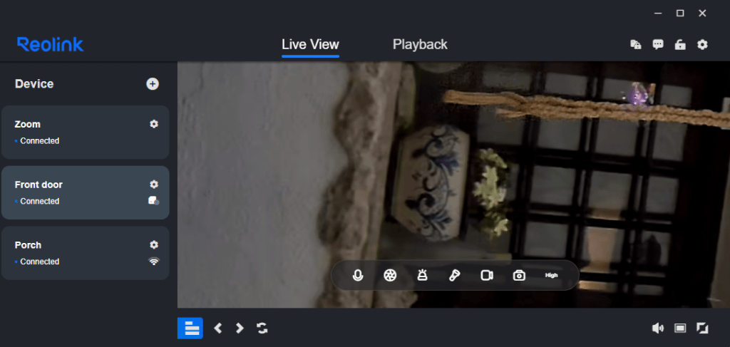 For now, the camera remains upside down outside on a bench – it’s getting dark and it’s quite cool – so perhaps that needs covering – dead easy to make impressive camera claims on a hot summer’s day – let’s see what it gets on a cloudy autumn evening.. Below is the PC Reolink app which took only a minute to set up including another two of my cameras. You can of course watch one camera or all of them.