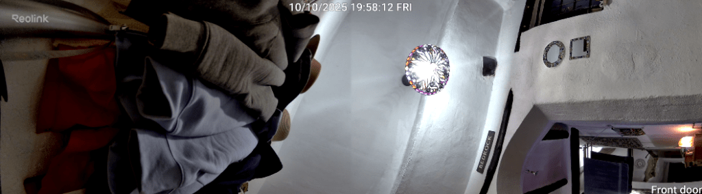 Why does that image look odd? Well for starters upside down and the camera comprises 2 lenses pointing in opposite directions for a full 360 degree view. Oh and I’ve for the next indoor shot, I’ll set the resolution to high, not low.
