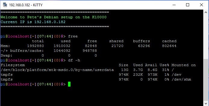 Don’t jump TOO quickly – the RPI works well – recovers perfectly from power loss, has simple backup capability etc etc… this has no-where near proven itself yet – but… it does open up some possibilities. I have an old tablet lying around – all down to whether I can root it or not. However, no rush – I’ll just let this sit on test. This morning I did my usual thing of creating a CLS command which clears the screen, reminds me of the IP address – and also adding a nice coloured prompt. That works after clear screen but when first opening the terminal I get some warnings I’ve not seen on Pi or other devices – so this is not a guaranteed replacement… just a nice experiment for now and would like to hear from anyone who’s done similar or used this blog to do the same.