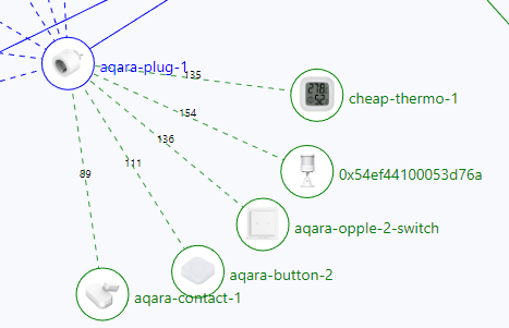 I moved the Aqara plug to my kitchen, WELL out of range of the Sonoff dongle – (but within range of other Zigbee mains-powered devices which as I said earlier can act as routers as long as they are plugged in, regardless of their output state) and the blue light came on. Finally I turned the device off in the Zigbee2MQTT interface and went to the kitchen – results as expected.