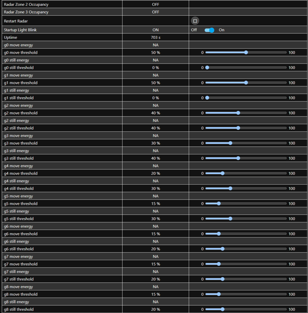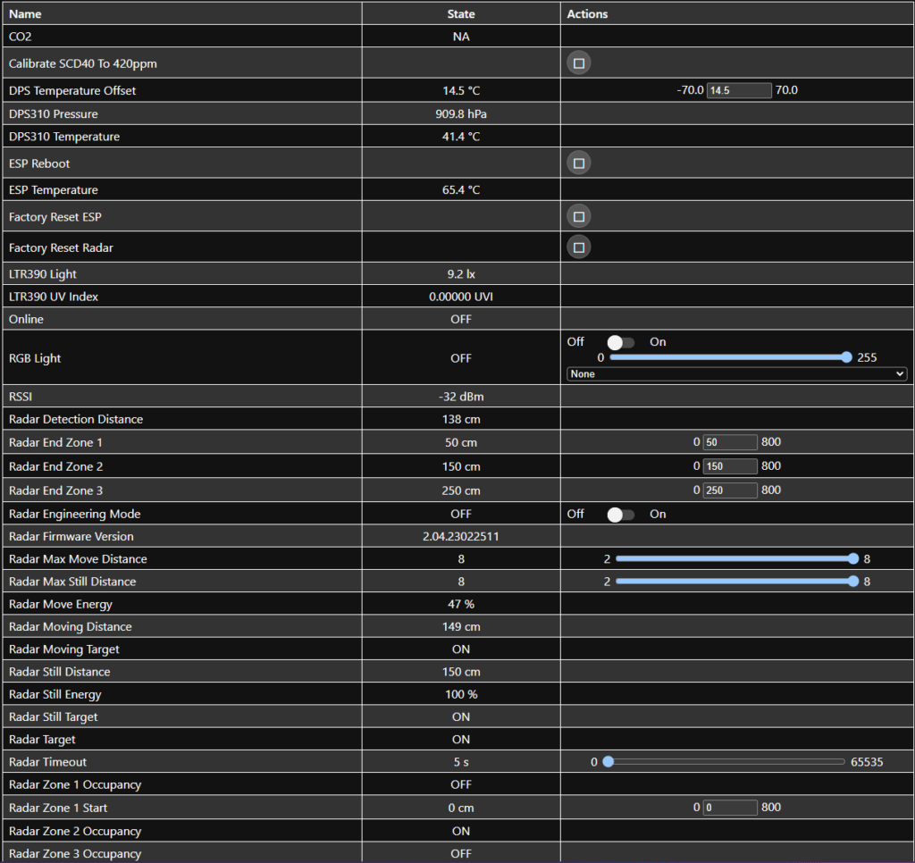 This is going to take a while as the radar sensing looks different to the sensing on the previous device – once again we have light levels, pressure and temperature as well as the radar stuff – all of which can easily be brought into Home Assistant.