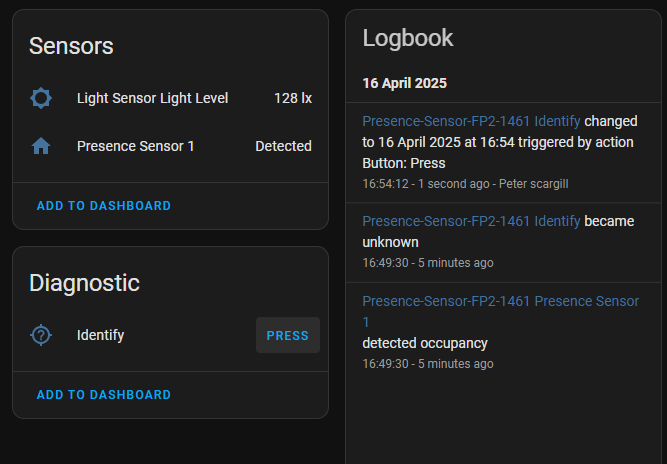 So further forward on the FP2 and Home Assistant. The FP1E works just fine in HA – but nothing on the FP2.