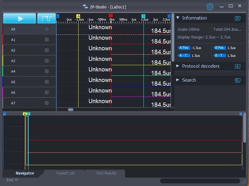 And yes, of COURSE I have a cheap rip-off £3 logic analyser (I also have an obscenely expensive one). Having a box is one thing, having decent software to go with it another. The Saleae logic rip-off unit is ok and works with the actual Saleae software. Having spent the morning with this ZP-Studio software, already I prefer it – granted I’ve only tried a few protocols such as I2c and serial – but, well, it just FEELS comfortable.