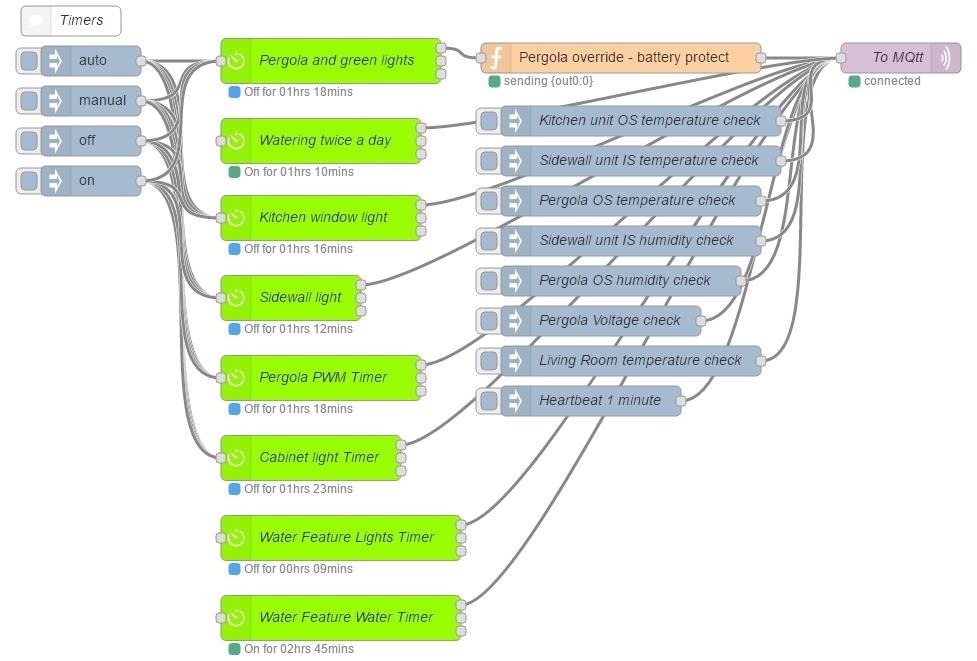 I’ve written more than one item on this subject and I have to say despite a rather lacklustre approach to answering people’s questions by their team and something of a lack of generic controls (such as a momentary push-button), the product actually works and works quite well. I have RGB lights, relays, sensors and a host of gadgets attached to Node-Red. Those which are required to just come on and off at varying times of the day are controlled by my BigTimer (which, recently updated, works a treat – or rather, it does if you remember to set the time zone when setting up the Pi as I found out last night when all the lights were still on at 2am, defying all explanation until my wife said “did you ever set the clock on that thing?”).