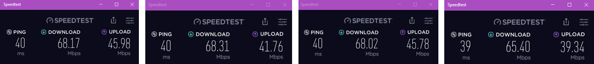 Update – next day: 84.30Mbps down, 21.94Mbps up,43ma ping.