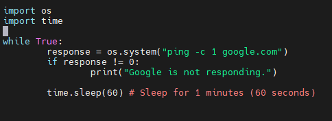 Attempt 1: “write a python script to ping Google every 5 minutes and return a result if there is no valid response.”