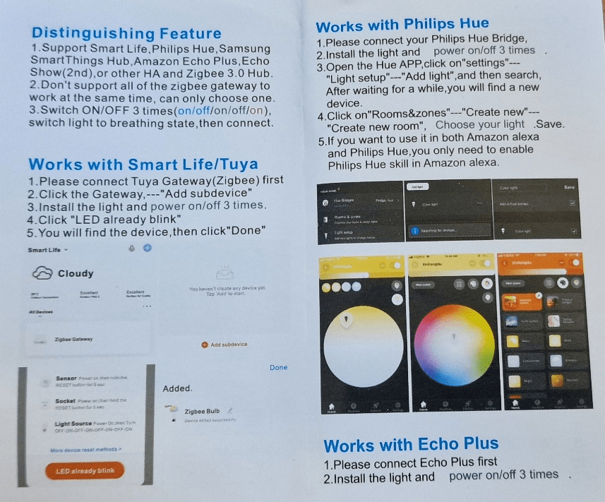 I have this lZigbee amp running under Node-Red that is… zigbee2mqtt can control and monitor the light – node-red-contrib-zigbee2mqtt can provide NR-based control of the light (3 nodes needed inc on/off/color/mono and actual colour). Your thoughts welcome… Meanwhile, at last, my Athom lamps arrived, nearly twice the price and twice the size BUT without doubt, the colours are far more usable in the Athom (Tasmota-driven – v12.5 Peyton at the time of writing) lights. If anything the WHITE might be slightly brighter on the smaller AliExpress Zigbee light – but only just. As a last thought – they don;t tell you the @INITIAL state nor what period on-off before lamps start pairing (ie dim/brigh/dim etc). I tried 3 times, couple of seconds – worked on one, not the other – I tried several combinations on the second lamp and was just about to give up when it started pairing. It’s been fine since..