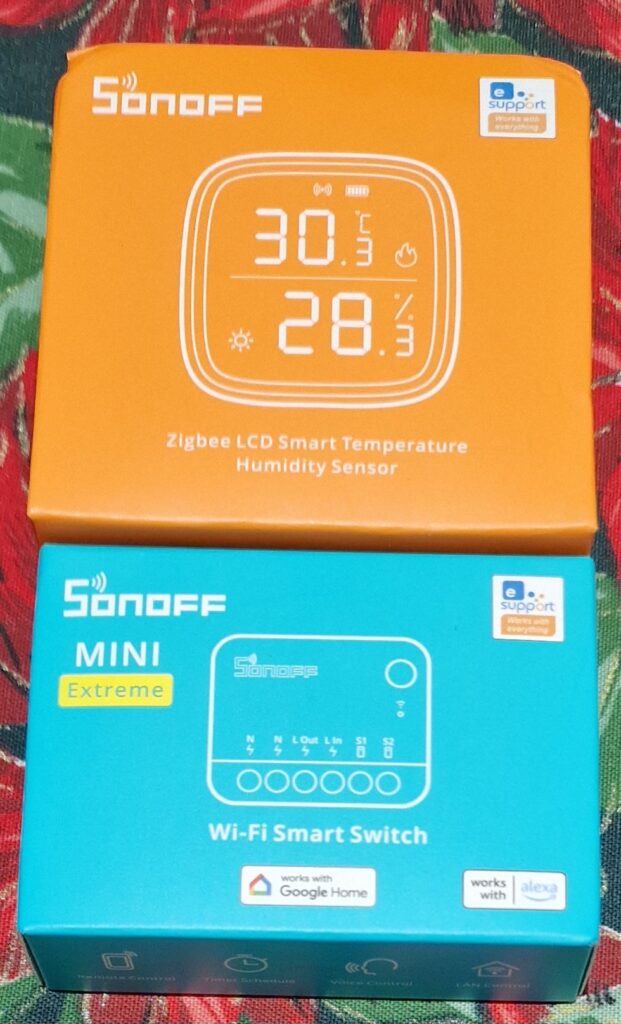 At the time I received the NSPanel Pro WHITE, a couple of other new Sonoff goodies arrived… The “Sonoff Zigbee LCD Smart Temperature and Humidity Sensor” SNZB-02D – and the “Sonoff Mini Extreme – WiFi Smart switch” MINIR4.