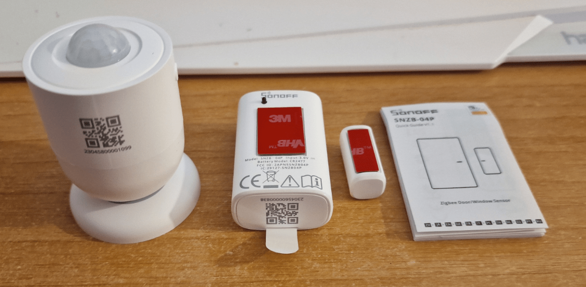 Two new sensors I’d not even heard off – the soon-to-be-released new SNZB-04P Zigbee door sensor set and the SNZB-03P Zigbee Motion Sensor – which unlike the SNZB-06P is NOT USB-powered – and it’s a little longer – the head shape is slightly different and something inside is rattling. Took me a while to figure out how to separate the front and back to find out what the rattle is and look for a battery. I have to say I like the magnetic mount common to the 03P and 06P.