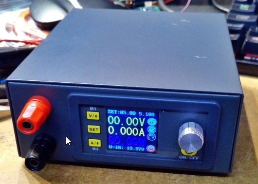 I love it, it’s a cute supply – I could see them all over the place (I have another pair of differently rated units but no cases which limits their usability). Has anyone put one of these together and noticed the fan noise? I’m sure it can be improved and this is a minor comment on an otherwise excellent little power supply. See the original blog for actual operation. Essentially you can control voltage (in this case up to 50v assuming you have 55v DC powering the unit (I plan to put my solar kit at 30+volts onto it back in Spain) and you can also limit the maximum current up to 5 amps. There is also an output on/off button bottom right. You have memories and LCD brightness control – but look at original blog for more on that.