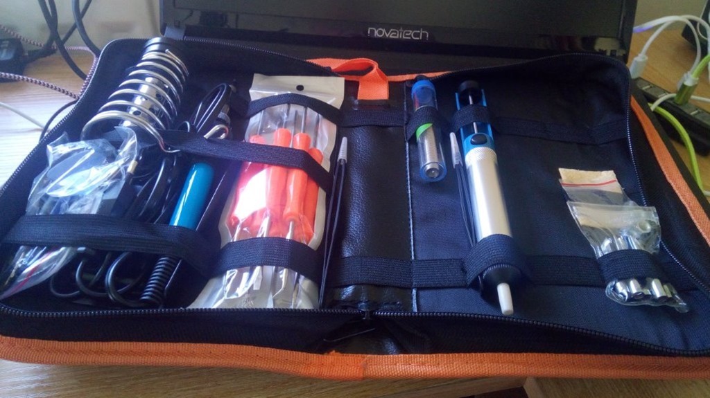 So I was very excited this morning to receive this kit which not only contains a nice thin, temperature controlled, mains powered 60w iron with base, sponge and a de-soldering gun but also spare tips of varying sizes, two sets of tweezers and a set of mini screwdrivers and various soldering aids. I could not have asked for more.