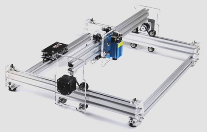 Note that the above assembled photo is from Banggood. Other suppliers may have a different photo as clearly, final construction varies in different revisions as happened with the laser printer. If you are assembling one of these, make sure you follow the instructions provided by the people you buy it from and not just randomly from the web. In other revisions the electronics panel is mounted vertically and the corner supports are completely different. I found this out the hard way.
