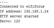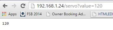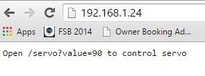 Check out the example code and you’ll see where this comes from. The next step is to add an argument to that URL – so let’s try http://192.168.1.24/servo?value=120 (remember you likely won’t get that actual address)