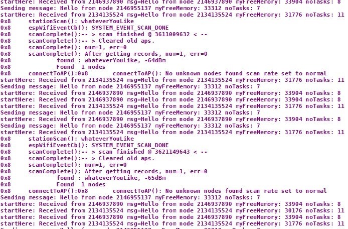 In case anyone else (like me) has been sitting on the shelf over this one – and would like to have a go at an ESP8266 mesh… we’ve been having a play.