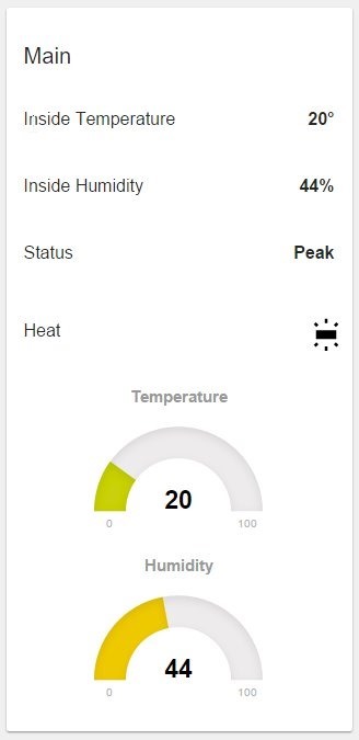 So the text to the left will get “heat” – from the moustache input – and will use the internal icon “wb_irradescent” icon (no that’s not a spelling mistake – well, not mine anyway) and either present it in red or black depending on whether the heating is actually on or off.