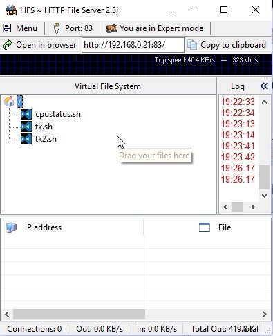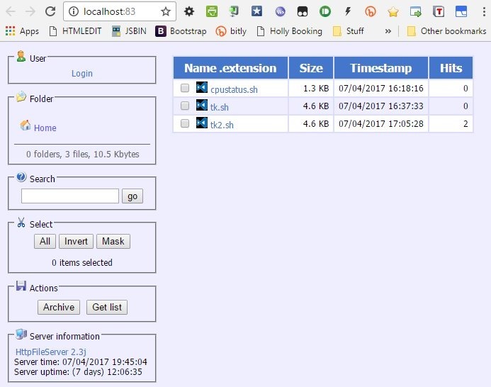 HFS lets you collaborate on files… while NGROK opens up the server port to the outside world without going anywhere near your router. Above you see the local version of HFS – and you can drag and drop files into that file area on the left… below you see the web version in this case on port 83 but any port will do as long as it isn’t in use.