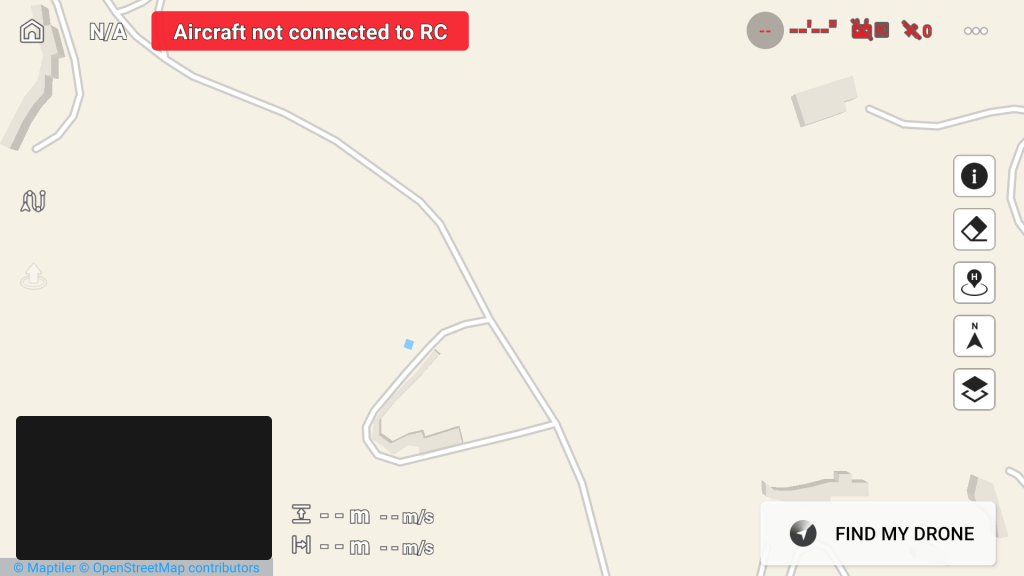 Below you’ll see an actual screenshot and I’ve expanded the map to full screen merely by clicking on it, leaving in the bottom left what will be the live drone video when one is connected. Clicking on that dark rectangle will restore the view to normal.