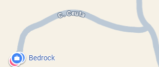 In above image – our house is shown as “Scargill Tech” on the left instead of Bedrock as in Google Maps – you’d never think the same company made both of these mapping systems. Follow that Calle Ceuta road up and right to the end which is the top of our hill.