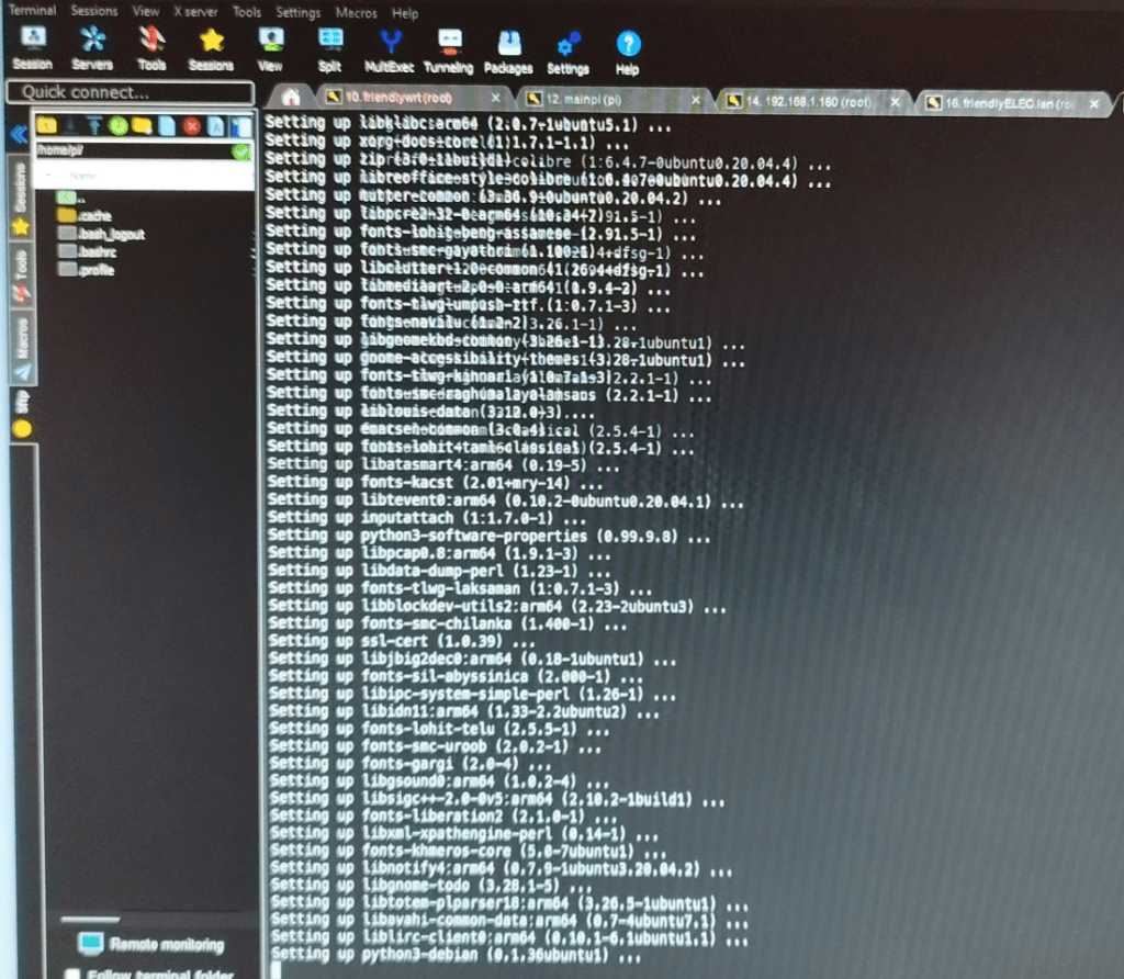 I simply downloaded the FriendlyCore file for SD from here (7GB) and again with Balena Etcher flashed it onto an SD (a 32GB I had handy) and booted the R5S from it. Using MobaxTerm on my PC, I SSH’d into it firstly as root (default password fa) and then as user pi (default password pi). No problems – next I need to find out what I can do with this – Ubuntu 20.04.1 LTS. This is all very easy – but then I got the bright idea of ensuring the desktop was installed – it wasn’t (well, it is called CORE I guess) so I went for that….