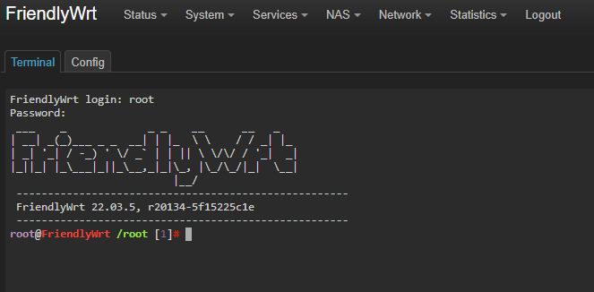 In the photo above, check out the main LUCI screen on the latest setup.. You’ll notice a NAS option (I’ve not used it) and see below where we’ve set up the second WAN and where I’ve customised the terminal.