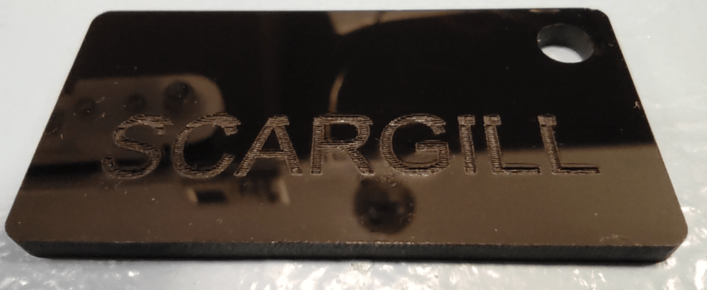 And I used the one and only perspex sample that came with the Laser 1.. OK so I blew it… ever so slight movement… the hole was in there already -I just did the engraving – 3000mm/min. I need more samples…
