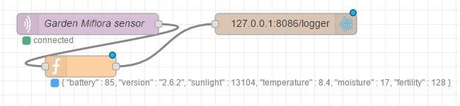 mqttc.publish(“miflora/garden”, “{ \”battery\” : ” + str(poller.parameter_value(MI_BATTERY)) + “, \”version\” : \”” + str(poller.firmware_version()) + “\”, \”sunlight\” : ” + str(poller.parameter_value(MI_LIGHT)) + “, \”temperature\” : ” + str(poller.parameter_value(MI_TEMPERATURE)) + “, \”moisture\” : ” + str(poller.parameter_value(MI_MOISTURE)) + “, \”fertility\” : ” + str(poller.parameter_value(MI_CONDUCTIVITY)) + ” }”)