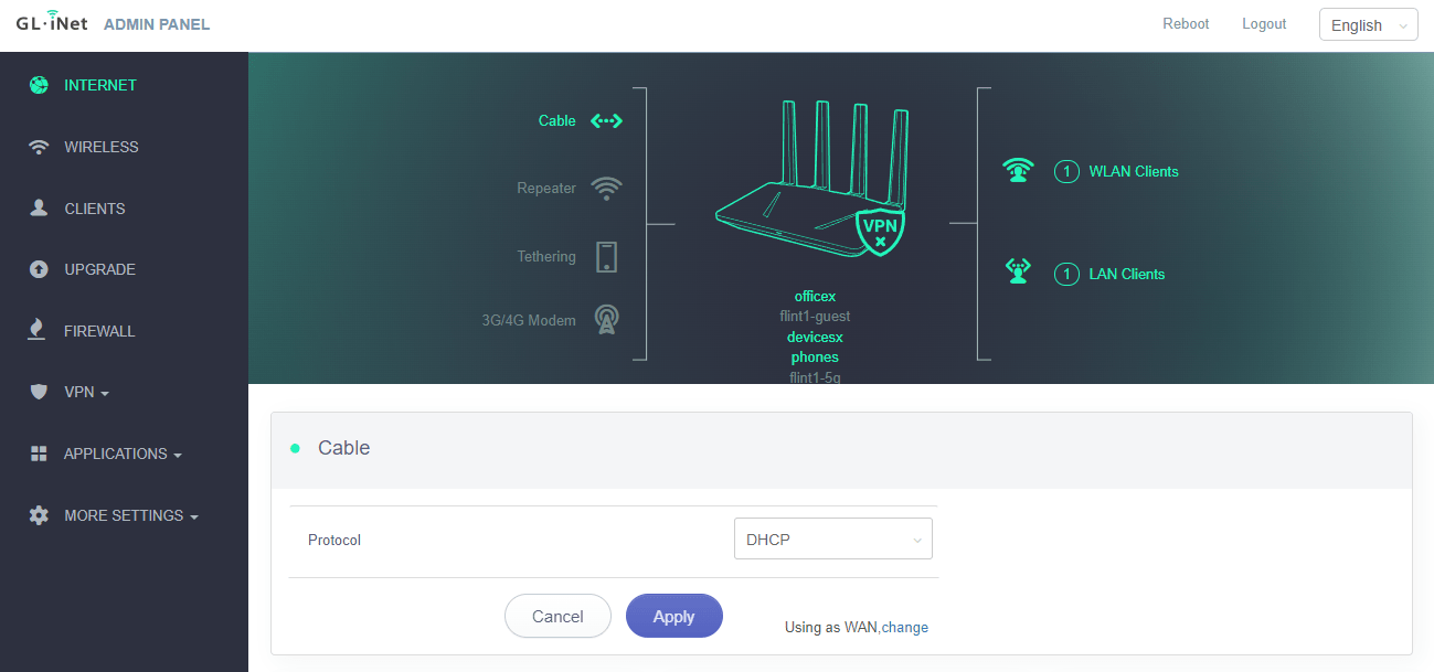 I’m with you – I liek OpenWrt – but the normal LUCI interface is cumbersome for day to day hence I mostly use the GL-iNET interface… LTE – I’ve not checked what you can so with the USB 3. See my other GL-iNET reviews – one of them I’ve used wirelessly with a mobile phone supplying 4G, and ended up using a second, smaller GL-iNET with a 4G SIM in it – again connected wirelessly as I could not figure out how to get the USB connection to do the job- my idiocy, not theirs – but it does work and prioritizes my normal Internet so only if that fails doe it kick over to the unit with the SIM in it. All unattended thankfully – sadly not with the same addressing so my remote access fails – that is my VPN access fails – I’ll crack that eventually – if you know more than me, feel free to comment or contact me.