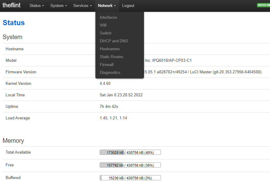 If you’ve used GL-iNET before, FLINT won’t take too much introducing. GL-INET specialise in routers based on OpenWrt but with with the standard-across-the-range simple but powerful GL-iNET Graphical Interface. The underlying LUCI interface is also available under “Advanced” in the menu system but I’ve only needed it to set up my own hostnane for the router until now – everything else I do in the main graphical interface – including setting up main and guest WiFi in 2.4G and 5G ehere needed. The GL-iNet web pages have full, easy to use instructions in English with plenty of images for the standard setup but not what I’ve done here with LUCI and the extra access points I need.