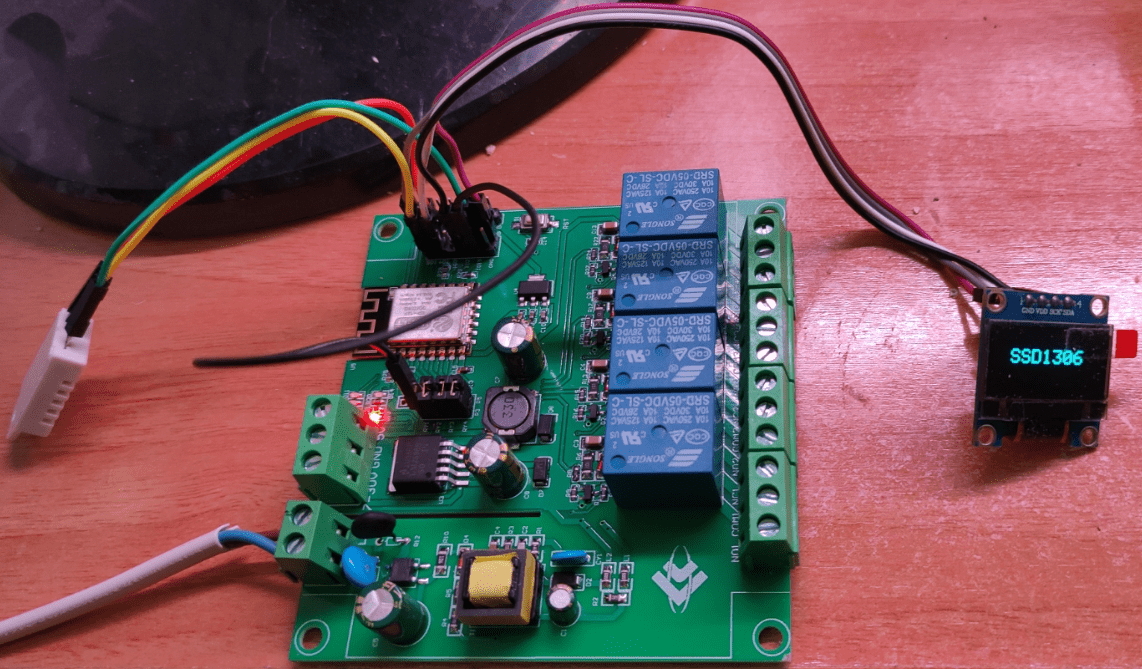 Who says the ESP8266 doesn’t have enough pins. So, in the image above, toggles 1 to 4 control the relays – toggle 5 (power 5) turns the internal LED on and off and toggle 6 turns the SSD1306 display on and off.