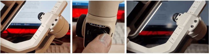 The lowest motor on the gimbal control arm, depending on what you are doing, could get in the way of your view of the phone screen – but Hohem have even thought about that – pressing the rear lever (opposite side to the OLED display) 4 times will flip the control arm to the other side of the phone – I’ll point that out when I add a video. Isn’t that handy.