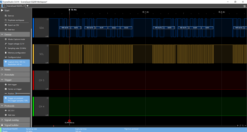 Here we see the SQ200 unit running Scanastudio (3.0.14) on my laptop… testing I2c from a BME280 to an ESP8266 on Aidan’s new weather station.