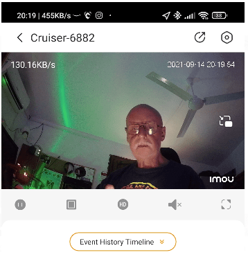 By now, I was seeing the update page on the APP – I was not actually sure if it updated or not – and now the APP screen was claiming at first that the camera was offline – which it wasn’t – ok, then, a NEARLY perfect experience – I refreshed the screen and all was well. I checked out the video of myself and noted 70Kbps and the wrong time – an hour late.