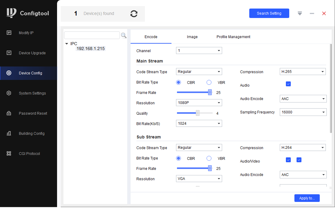 I finally went off to get a popular and free config tool I’ve used in the past and sure enough, not only did it instantly spot the camera using the username “admin” and the default password I’d left on the bottom of the camera – but also found the control port (37777)
