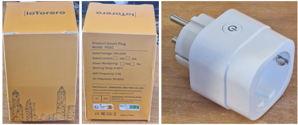 Meanwhile I sent off to AliExpress for a cheap smart plug and learned a lot in the process. Athom make not-particularly-cheap but good Tasmota (or ESP-home) based smartplugs and I’ve lots of good experience with them. I noticed while looking at the Aliexpress ad that the name of the cheap plug is Iotorero. I also noticed the word Athom in the photo and tackled Athom – it turns out they’ve renamed the company though the brand name Athom is EVERYWHERE. Not sure about that but it’s not my business.