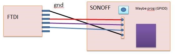 Use FTDI at 3v3 setting – in the original boards, press the large button –THEN power up FTDI. DO NOT connect mains power while doing this – you will fry. Test MQTT connectivity, disconnect, put back in the box, use. NOTE – the newer boards marked RF do not seem to attach GPIO0 to the button – see later blog – it may be necessary to make a VERY find short at power=up – of two surface mount components.