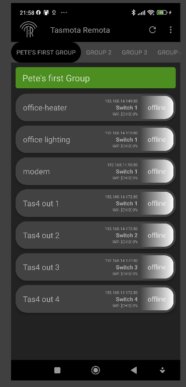 In practice this APP lets you easily control many of your Tasmotised devices on your mobile phone and in some respects it is WAY better already than the “competition” like Node-Red-Dashboard and many other alternatives but still early in development – I really think if you use Tasmota you should give it a go and if you don’t like what you see, TELL ME or better, tell the AUTHOR.