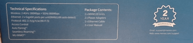 An interesting title with the assumption of a certain “home” size. I’m confident this mesh WiFi router pair will handle our small-ish home here in Spain – the box claims “Covers up to 300m2” and “Ideal for 1-500Mbps fibre”. It says nothing about 100Mps incoming 4G but then I guess those of us using mobile providers for the home are a tiny minority. Here’s the Meross link for the mesh routers. (I’m sure that’s not how you spell “pairing” 🙂 )