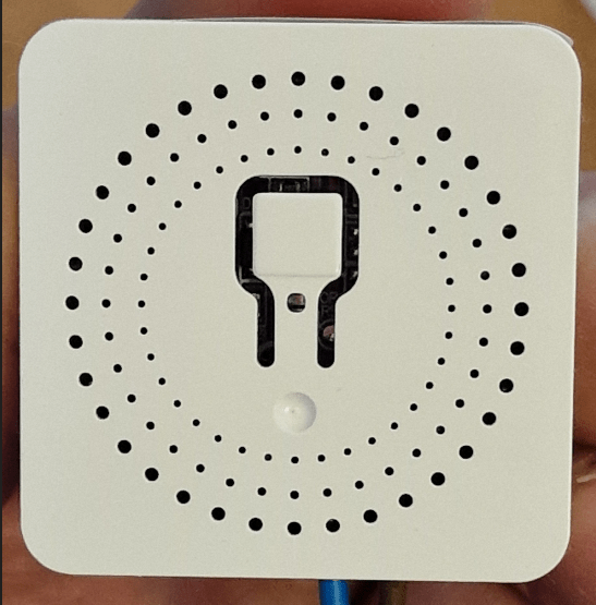 Functionally this unit has live and neutral in, live and neutral out and a contact pair for manual switching. It also has on the back, a “button” – see photo – for setup.