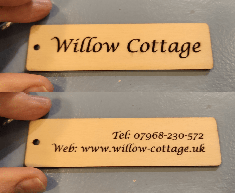 When done I sprayed the lot with Rustoleum spray clear matt (chalk finish) lacquer (a double-sided key-holder). The job is being produced on my new aluminium base seen above. I have to say, not perfect but I’m reasonably pleased with this result.. I did not use the perspex shield on the laser but also did not use any air blower. (I do wear safety lenses at all times when engraving).