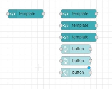 Simple? Yes because the previous code makes it so. A button in a template – auto stretched by the code above and all it has added is the background colour – which the above code can manipulate – and the classes. That’s it. The ng_click is what happens when you press the button – the template outputs a payload of whatever you’ve set. No, really that is it. So on that output, msg.payload will be whatever you set it to be.