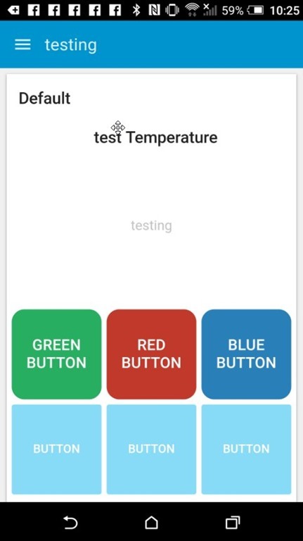 The garish red, green and blue buttons you see above – note the rounded edges you control, there is an attractive and obvious colour change on press (and return to original colour after press without you having to program it ), audible feedback on press (on phones with vibrators), wrap on text – indeed you can put anything in there – icons etc. but see my comment above about icons (if used as buttons)