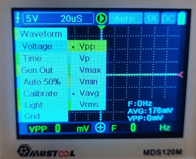 The MDS210M also has a settable square wave output from 1Khz to 1Mhz, stores up to 25000 waveforms and has a built-in Lithium battery for around 8 hours use on a charge. There’s a stand on the back – you can see the scope sitting on my desk without being propped up.