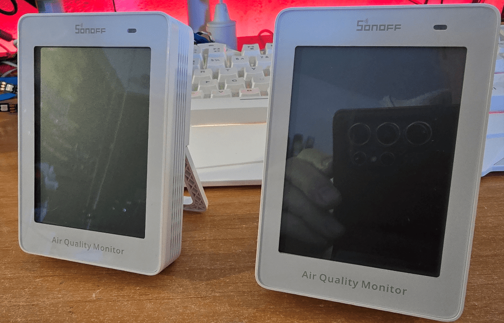 In the end I only had the one CO2 unit from Sonoff – and I asked both Sonoff and Switchbot for a second unit to compare. I received second one from Switchbot. I tested all three outside, next to each other and after waiting an hour or so to let them settle (and carefully avoiding breathing on them), CO2 levels still varied wildly. I’ll leave you to draw your own conclusions until I get a second CO2 device from Sonoff.