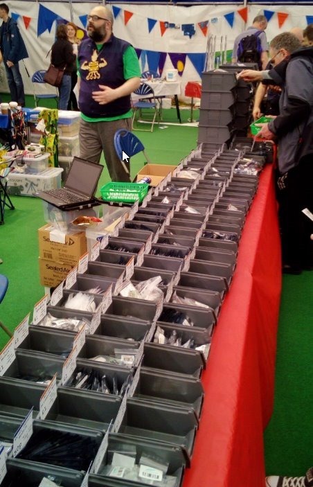 Among other delights there was a genuine dinosaur wandering around with his (her?) handler. Very impressive. Oh and you see those drawers on the right – wow – I SO miss the old radio rallies and computer shows where people brought their old junk 0 but better, suppliers brought tons of surplus stuff and sold dead cheap. And so it was that the bearded fellow on the right – SO missed this – he decided to resurrect the idea – he had many dozens of £1 trays (3 for £2) and the prices were REAL bargains – anyway I think he’s called ABX http://stores.ebay.co.uk/abx-labs